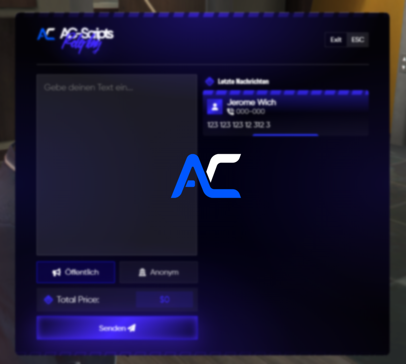- Clean UI - Compatible with ESX - Price per letter